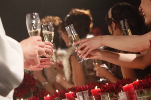 祝杯直後には、ゲストの方々が高砂にてお二人と乾杯!