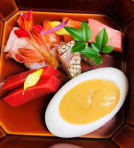 それぞれ旬のネタを使用したお寿司、お刺身の段、から揚げ、ハンバーグ等のお肉や、ポテトフライがたっぷり詰まったボリューム満点な内容となっております。