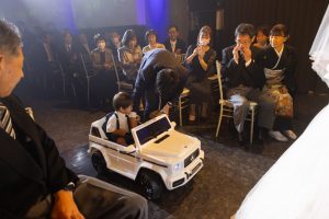 このご結婚式では、ベンツに乗ったお子様がリングキッズを務めてくださいました♪