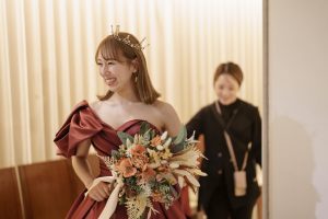 再入場したご新婦様は、カラードレスに衣替えをし