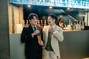 バーカウンターでは、大事なご友人様とお酒片手に語らったり。