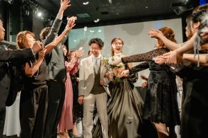 挙式から、おめでとうの声やひとりひとりの幸せそうな笑顔が見られる距離感。