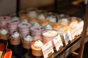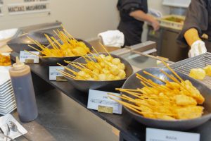 ケーキ入刀ならぬマカロン入刀だったり、串揚げや鉄板焼きの実演ビュッフェ。