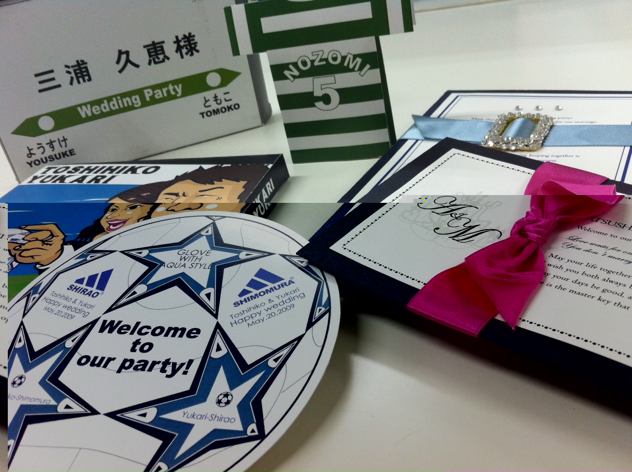 お二人の趣味や職業などをヒントにウェディングプランナーが様々なご案内状のカタチを