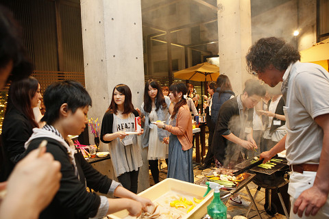 テラスでは自社農園の有機野菜のバーベキュー♪
