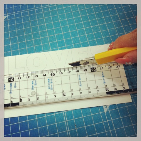 3.文字の下面をきっちり合わせて軽くカッターで折り線を入れて置きます