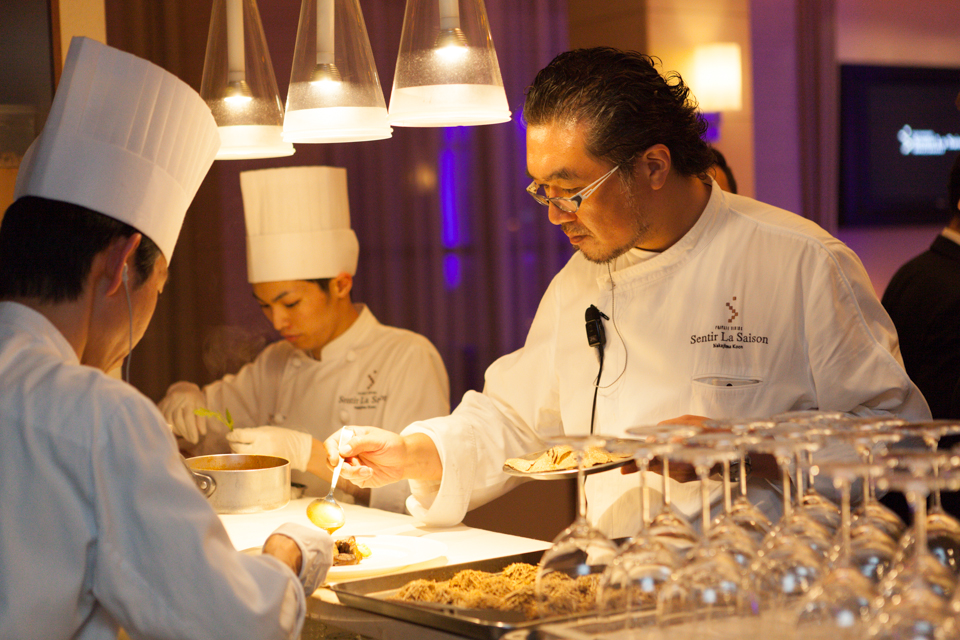 そして会場は、写真家・卜部氏の音を奏でるフォトが飾られ、また光のコーディネーター秋濱氏により、今までに見たことのない鮮やかなSentir La Saisonが造り出されていました!