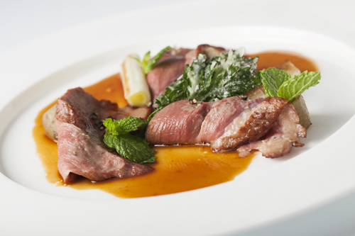 アミューズに椎茸とカニを使ったフランや粗引きカボチャのポタージュ等、