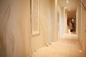 皆様をお出迎えするリビングのアプローチは白い枝や羽を使って、この時期ならではのコーディネートで♪