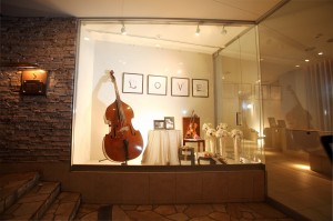 わざわざ堅苦しく両家名を掲示しなくても、ショーウィンドウのディスプレイひとつでおふたりのパーティ会場であることを気付かせてしまう…..