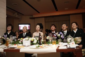 高砂の前に ご新郎ご新婦様・ご両家ご両親様と一緒に並んでご覧いただきました。