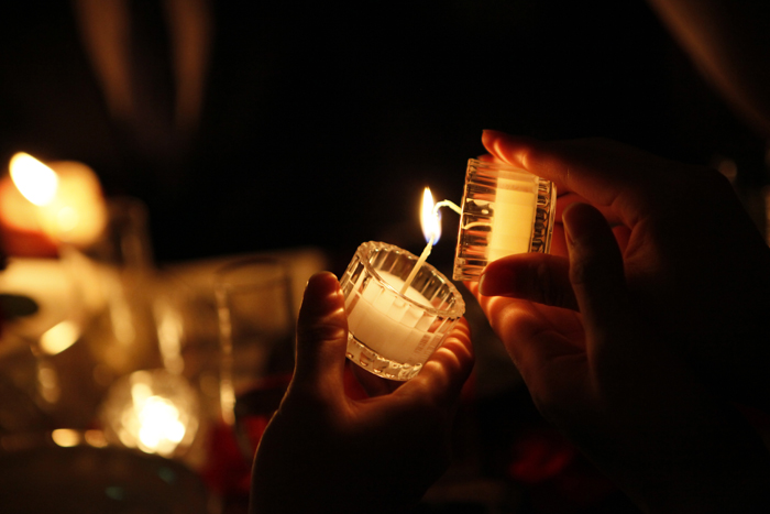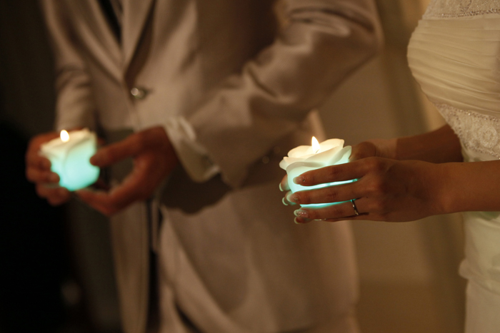 パーティー中の心温まるシーン 2015.01.08 こんにちは。 カメラマンの鈴木です。 始まったばかりの2015年を、みなさまはどのようにお過ごしでしょうか 今日はキャンドルリレーのショットをご紹介します。 ご新郎ご新婦が灯したキャンドルの火。 その火をリレーでつないで、ゲスト全員のキャンドルに火が灯ると 会場が満天の星空の様に。 パーティーの最後には、全員の願いを込めてその火を一斉に吹き消します。 厳かで、心温まるひとときです Prev Blog Top Next