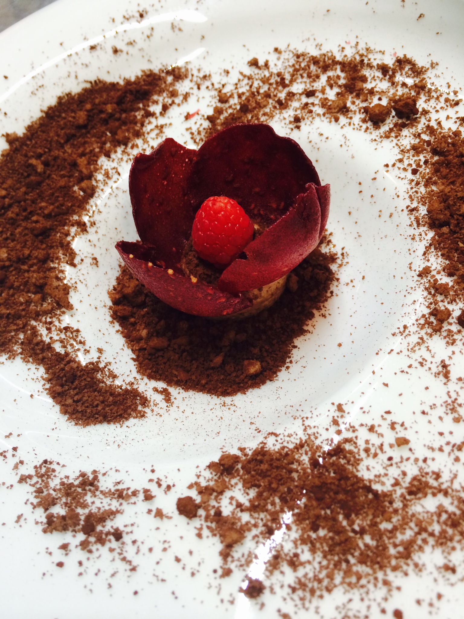 こちらはガナッシュにフランボワーズの飴を指して花に見立てたものです。