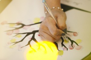 ゲストの皆様に指紋スタンプやサイン、メッセージを葉っぱに見立てて書いてもらうことで一本の木が完成します。