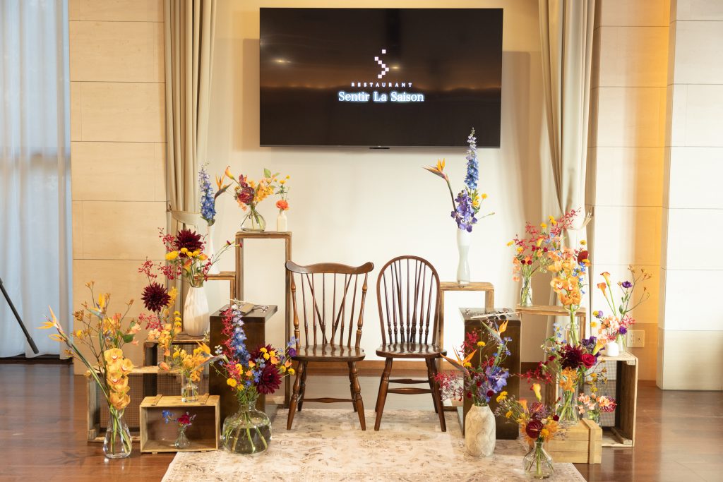 このように、後ろの装飾やお花の色合いでかなり印象が変わりますよね!
